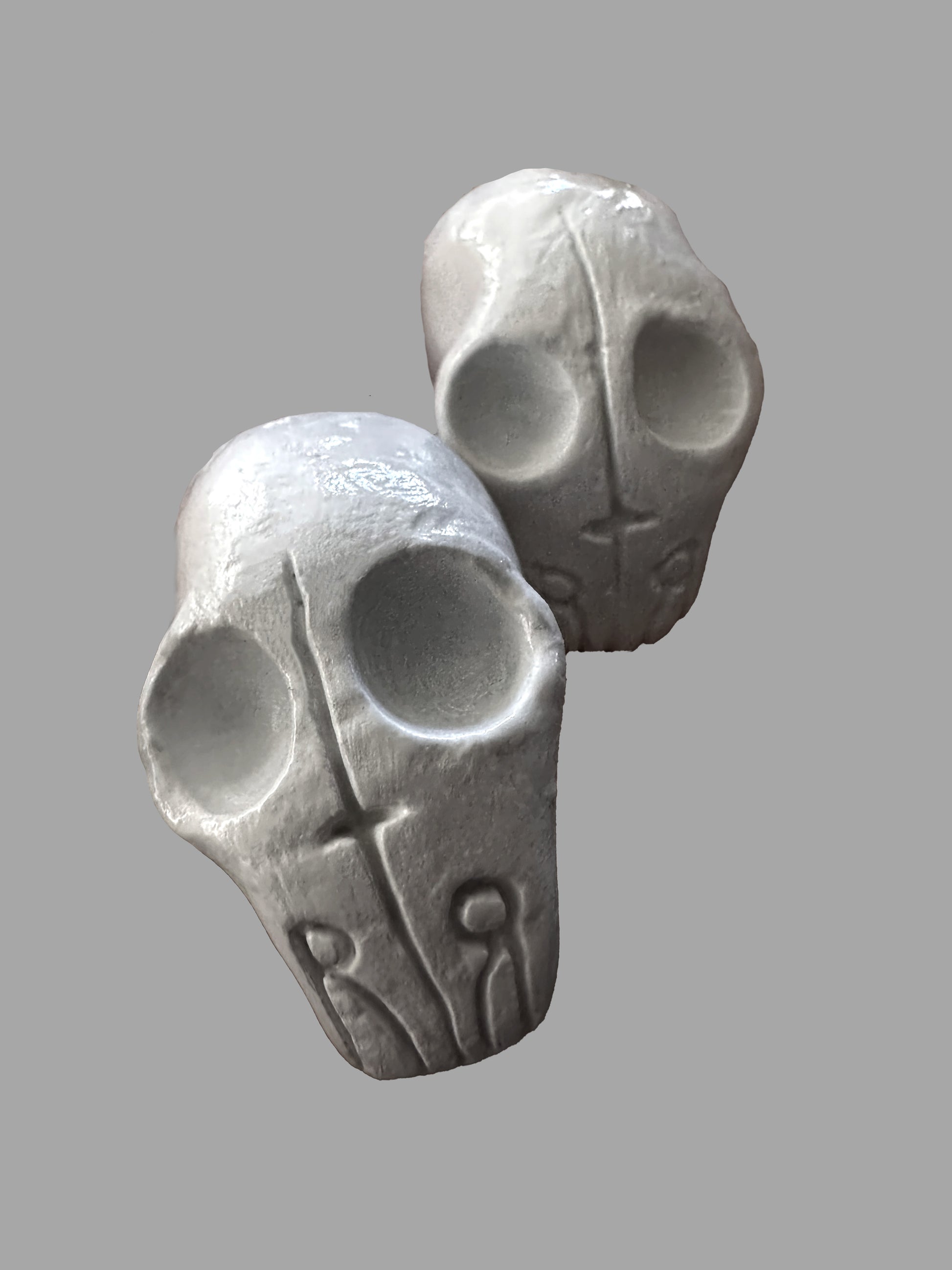 Handmade skull sculpture made of clay and transparent acrylic varnish.