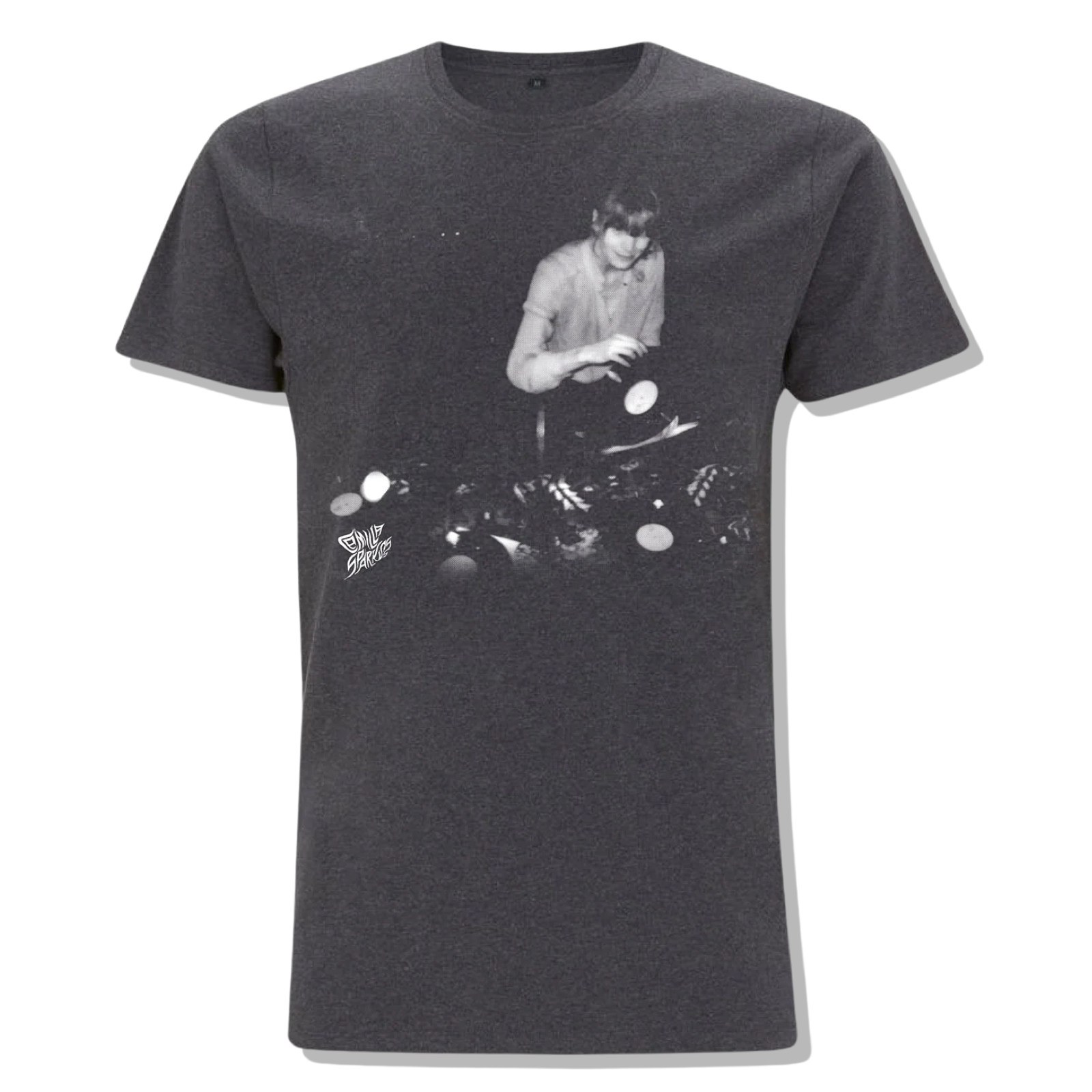 Unisex cotton dark grey T-shirt with white photographic print.